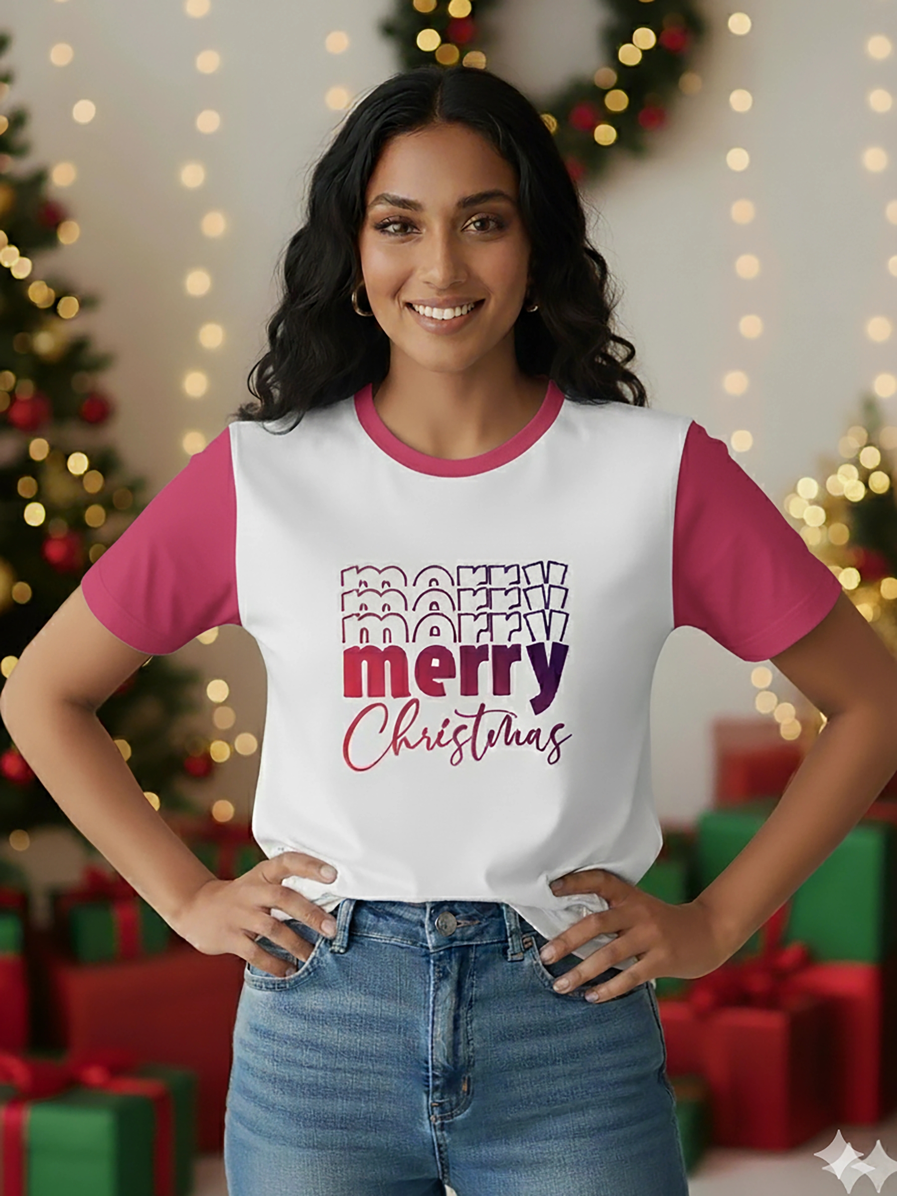 Retro Merry Vibe Two Tone TShirt | pink | F